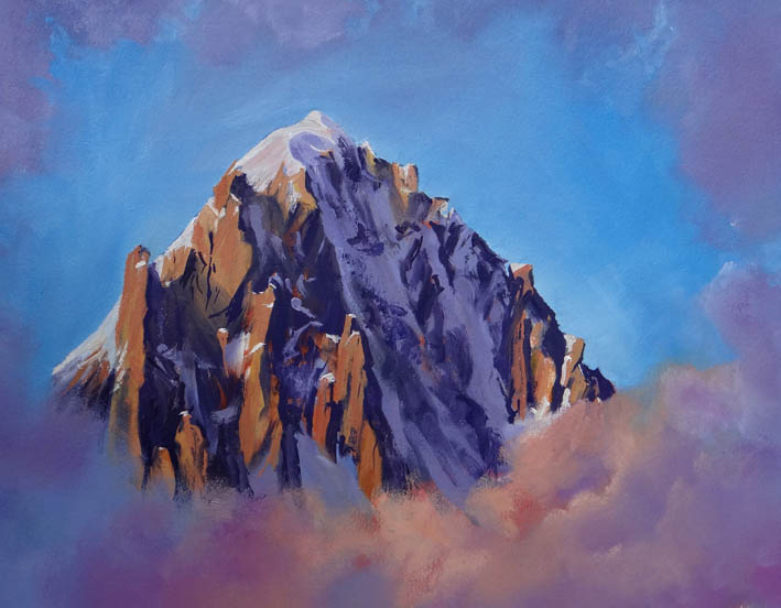 Evening Light Aguille Verte, Chamonix Painted in Oils Size 17 x 13 Evening Light Aquille Verte is sold unframed for safe delivery and personal framing.