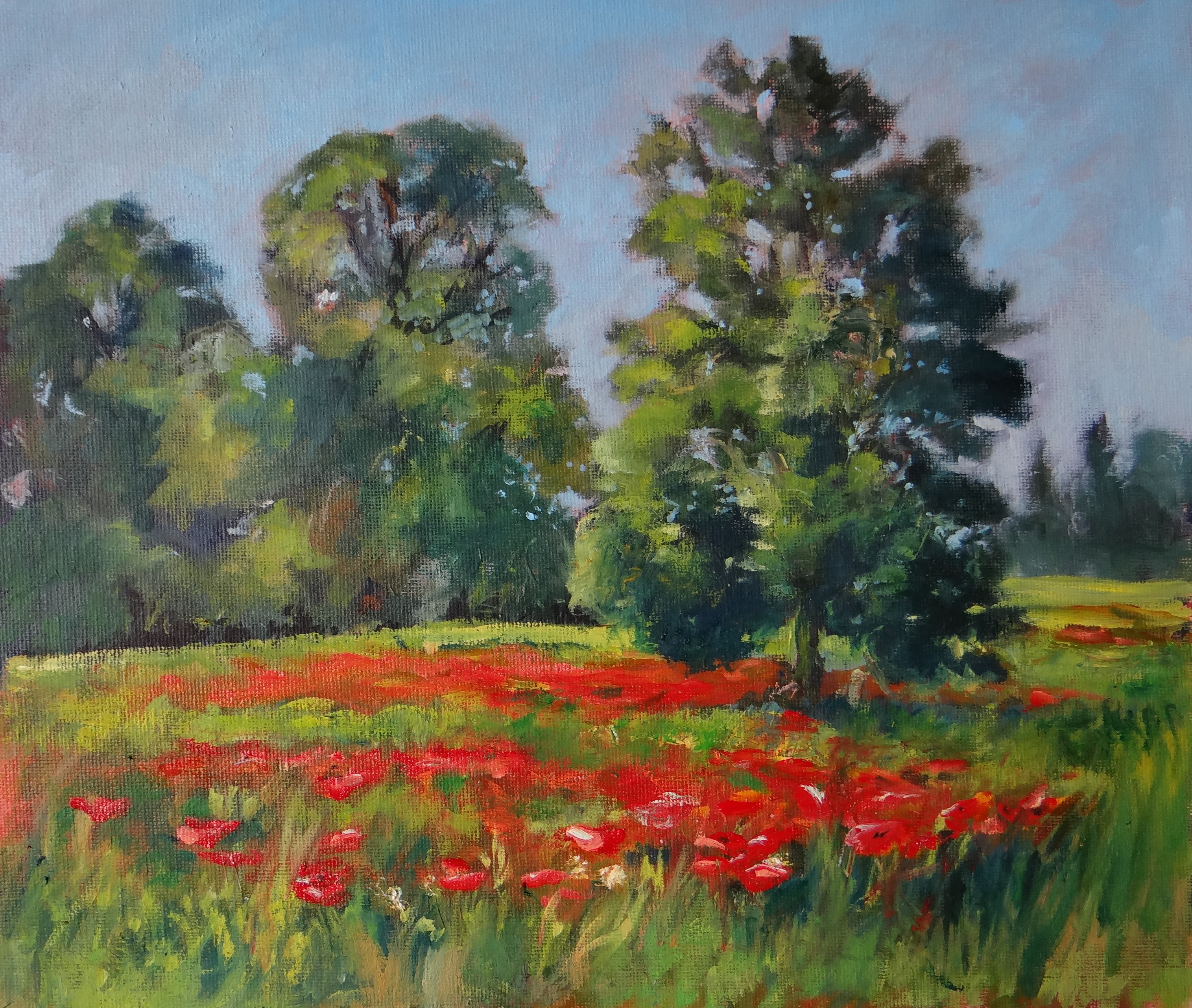 Italian Poppies Painted in Oils Size 10 x 12 inches A field of Poppies, swaying in a warm Italian Breeze To purchase or for more information about this Original Oil email Jane at lakelandart@hotmail.co.uk