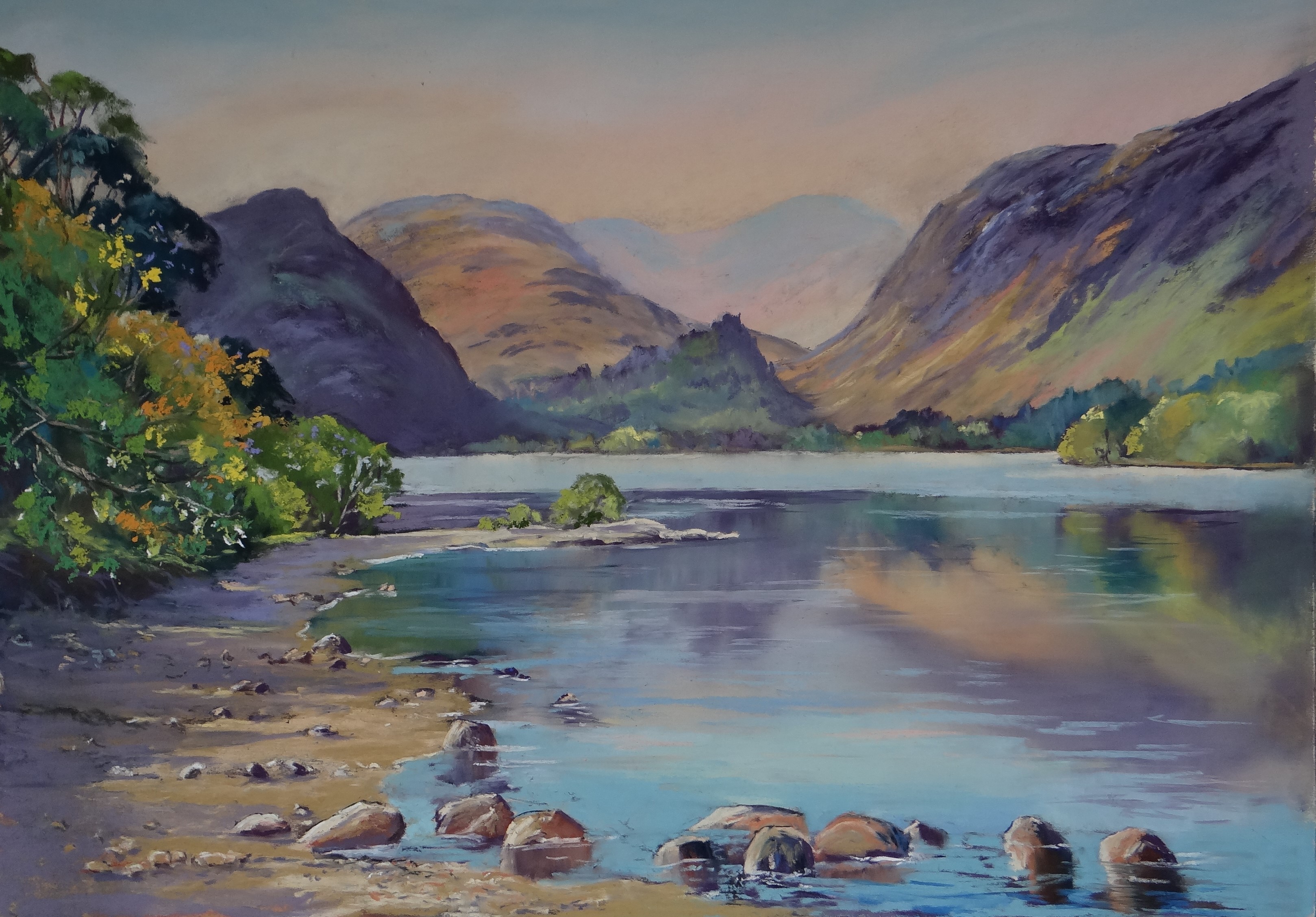 Derwentwater, Spring Morning Painted in Pastels Inspired by a very beautiful Lake Signed limited edition Print Size 20 x 16 inches including Ivory mount
