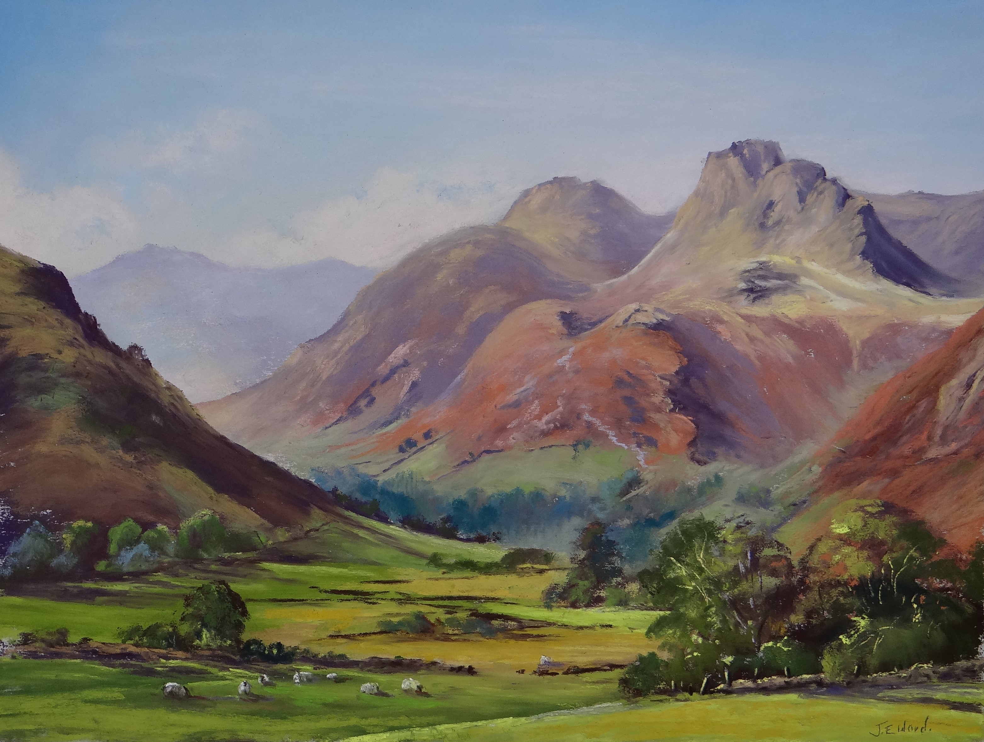 Langdale Pikes, Lake District Size 20 X 16 inches including Ivory Mount. A stunning valley with mighty Peaks towering above, makes it a climbers and walkers paradise. Beautiful and dramatic any time of the year.