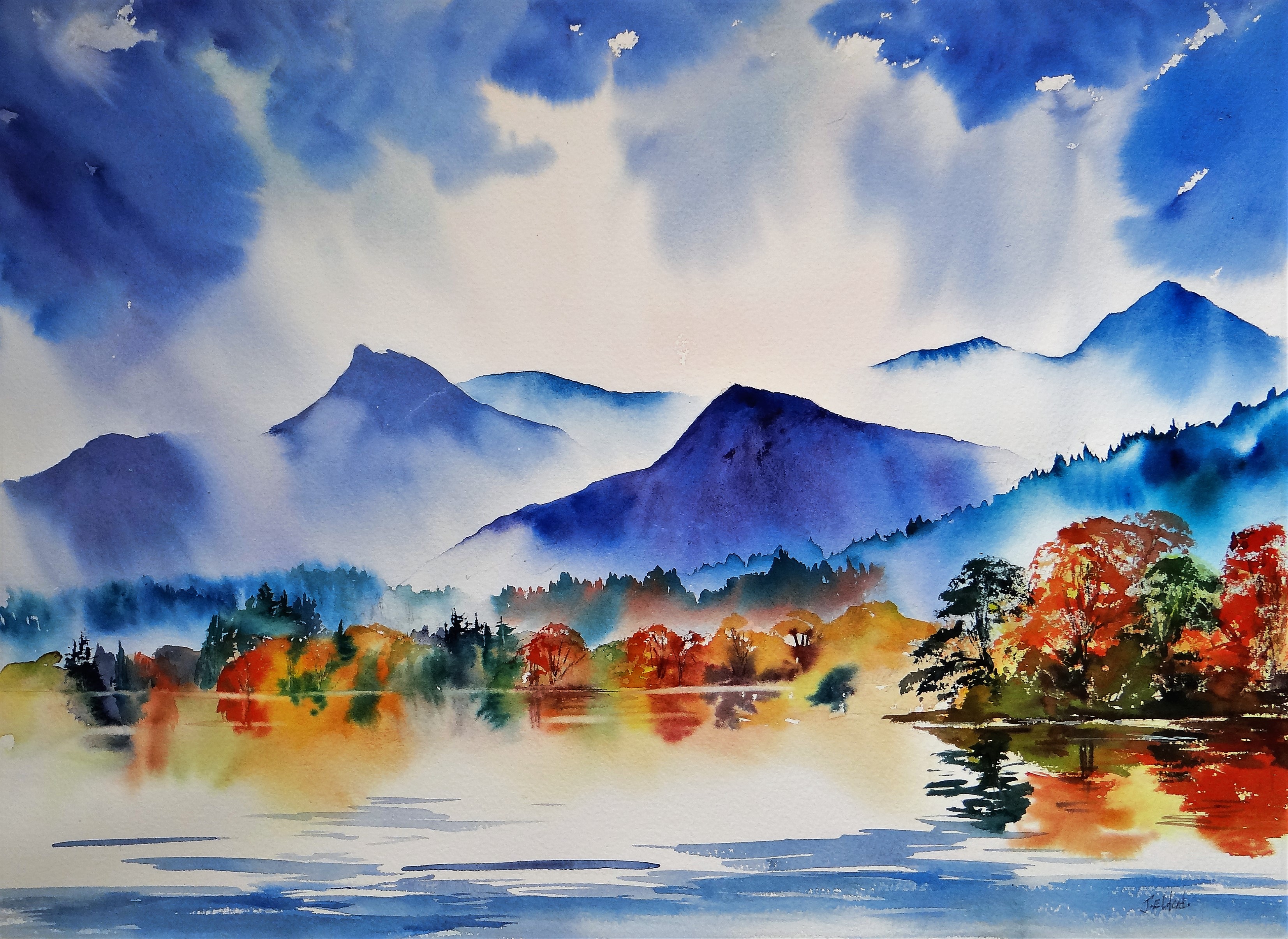 Autumn Morning, Derwentwater Painted in Watercolours Signed limited Edition A3 Print On the shore of Derwentwater near Keswick. Looking towards Causey Pike, Eel Crag, Barrow and Grizedale Pike all beautiful shaped mountain peaks. Price £65.00 including P&P