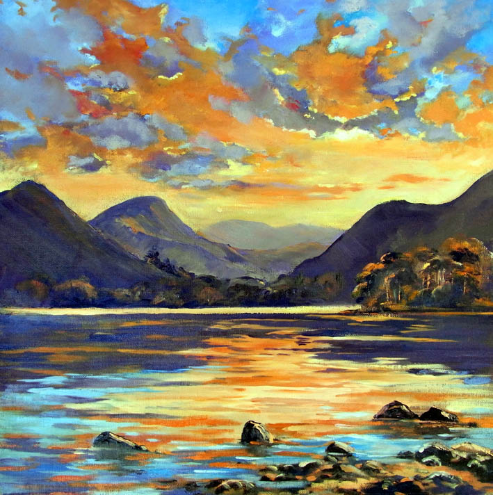 Newlands Sunset, Derwentwater Canvas print size 16 x 16 inches approx For more information email lakelandart@hotmail.co.uk