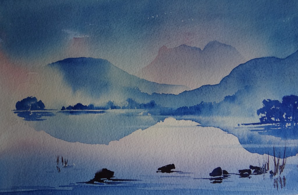 Windermere Morning Blues Original watercolour Size 11 x 7.5 inches £ 65.00 This original watercolour is sold unframed. It will look great with an Ivory mount and a simple frame to suit.