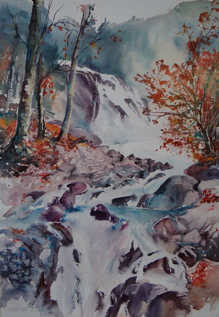 The sheer Beauty of Buttermere valley on an Autumn day inspired this painting of Sour Milk Gill