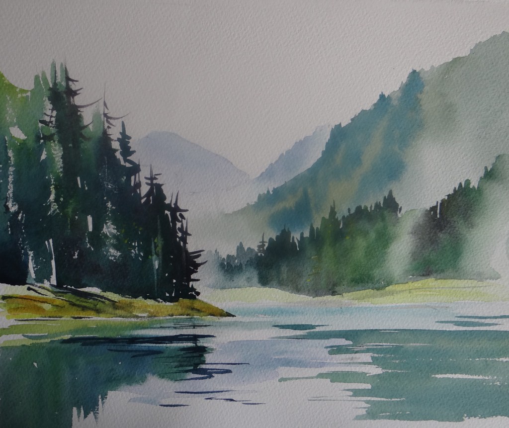 Lac Montriod, Morzine Painted in Watercolour Size 12.5 x 10 inches Sold