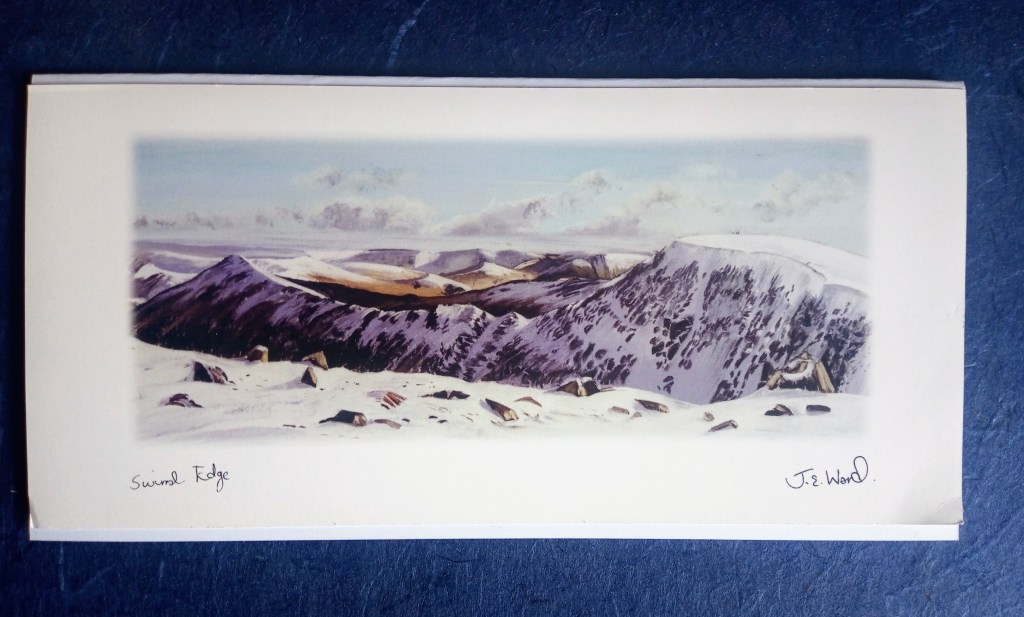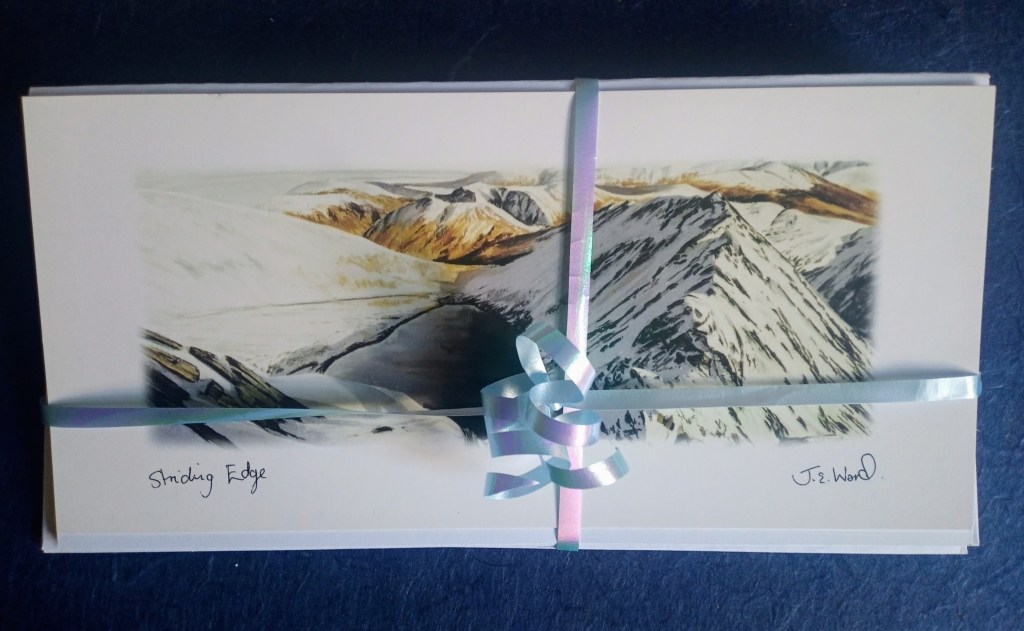 Pack of Five Lake District cards These include the following paintings:Striding EdgeSwirral EdgeButtermereInnominate Tarn Ideal as a gift/ Christmas cards for Mountain or Lake District lovers. Cards are left blank inside £12.00