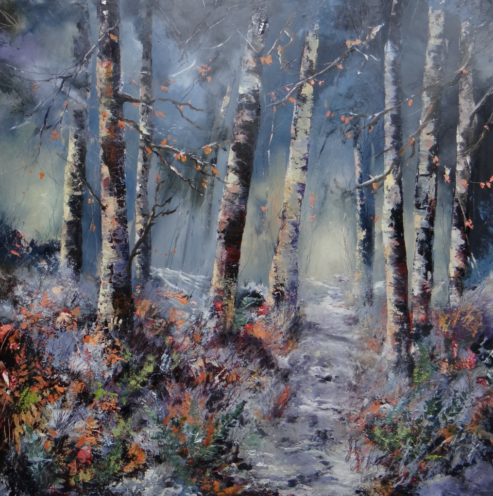 Silver Light Oil on Board Size 25 x 25 inches with Bespoke Frame. Sold For more details or to purchase this Stunning woodland painting email lakelandart@hotmail.co.uk