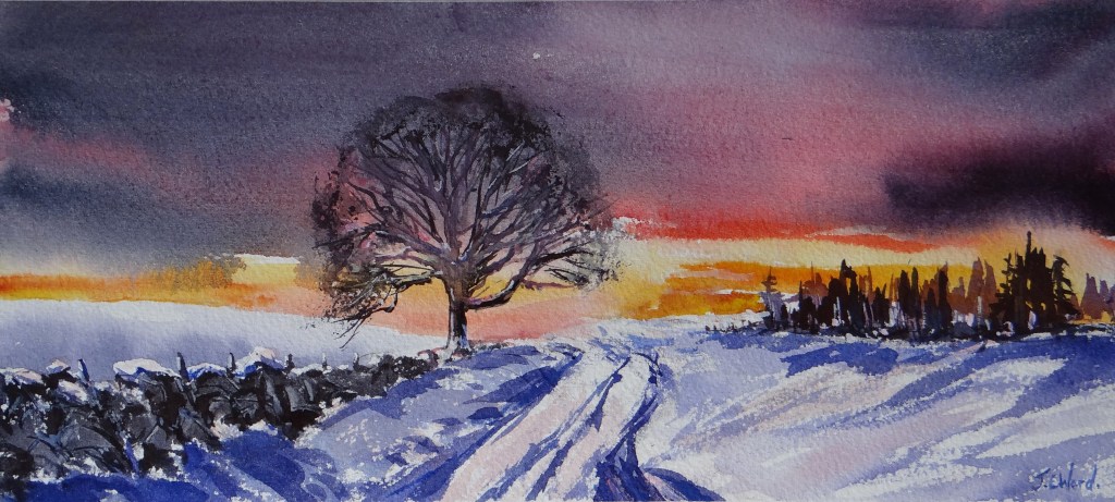 Winter Tree, Yorkshire Moors Painted in Watercolours Size 47 cm x 26 cm including Ivory Mount. £95.00 + £5p&p This Original Watercolour painting of a lonesome Tree on the North Yorkshire Moors is sold unframed for safe delivery and Personal framing