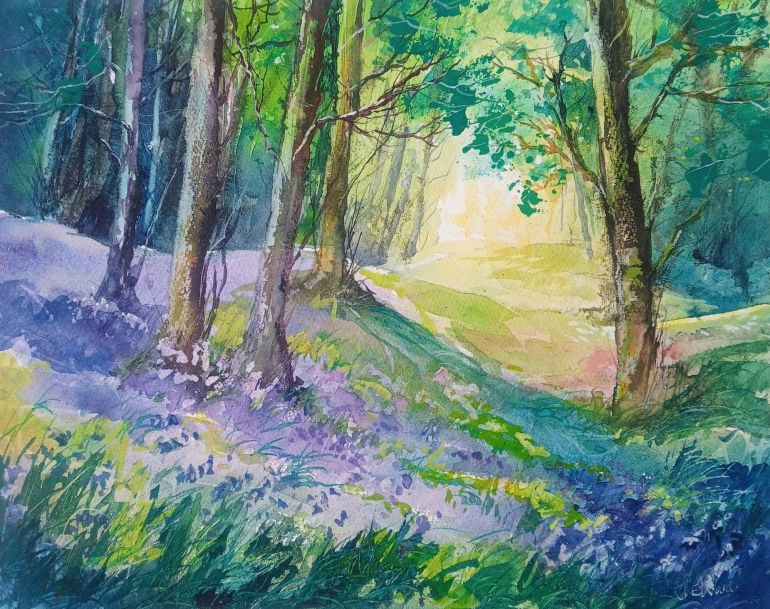 Bluebell Glade, Thirlmere Painted in Watercolours Size including Ivory Mount 20 x 16 inches Price £175.00