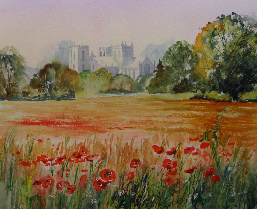 Ripon Cathedral from Hewick Bridge Painted in Watercolour For sale at Teal Gallery Bedale £425 Size including Ivory Mount and White Oak Frame 20 x 16 inches To purchase this Original watercolour painting or for more information on Prints email lakelandart@hotmail.co.uk
