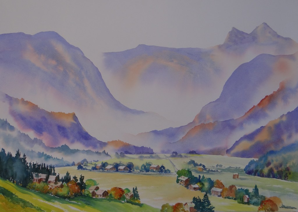 Samoens painted in watercolour size 27 x 22 inches