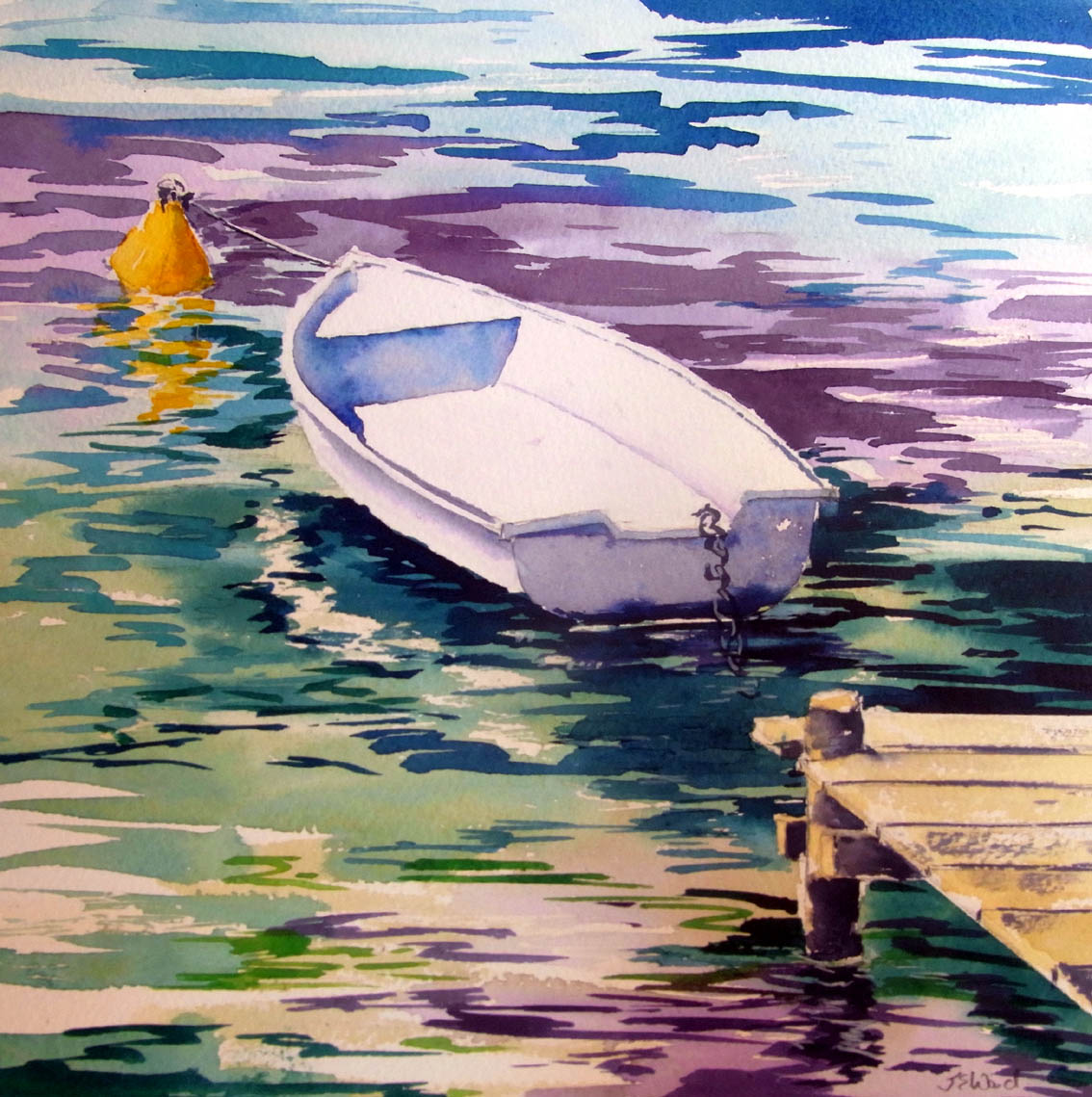 Turquoise waters, Annecy Original Watercolour by Jane Ward