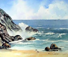 Paint a stunning Seascape with easy step by step video demonstration and written instructions. This fun project covers masking, palette knife painting and how to create atmospheric waves, this is a great project for the Beginner/Intermediate.